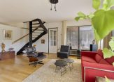 – Ruime en sfeervolle woonkamer (oppervlakte inclusief open keuken: circa 42 m²), voorzien van een prachtige eiken parketvloer, gestukadoorde wanden en plafond en een spiltrap naar de verdieping en een open verbinding naar de hobbykamer.