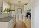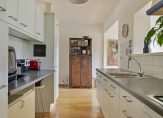 – Ruime inpandige berging/bijkeuken (oppervlakte: circa 17 m²) met aansluitingen voor de wasapparatuur, een uitstortgootsteen, inbouwkast, de CV-opstelling (Intergas HR-combiketel, bouwjaar 2023) en een loopdeur naar de straat.