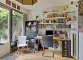 – Fijne kantoorruimte (oppervlakte: circa 10 m²) met parketvloer en een loopdeur naar de achtertuin