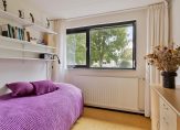 – 2 fijne slaapkamers (oppervlakten: circa 8 en maar liefst 18 m²). Voorheen waren dit 3 kamers. De oorspronkelijke indeling is eenvoudig weer terug te brengen. De slaapkamer aan de voorzijde is voorzien van een vaste kastenwand en airco. De slaapkamer vaan de achterzijde heeft een prachtig uitzicht over openbaar groen.