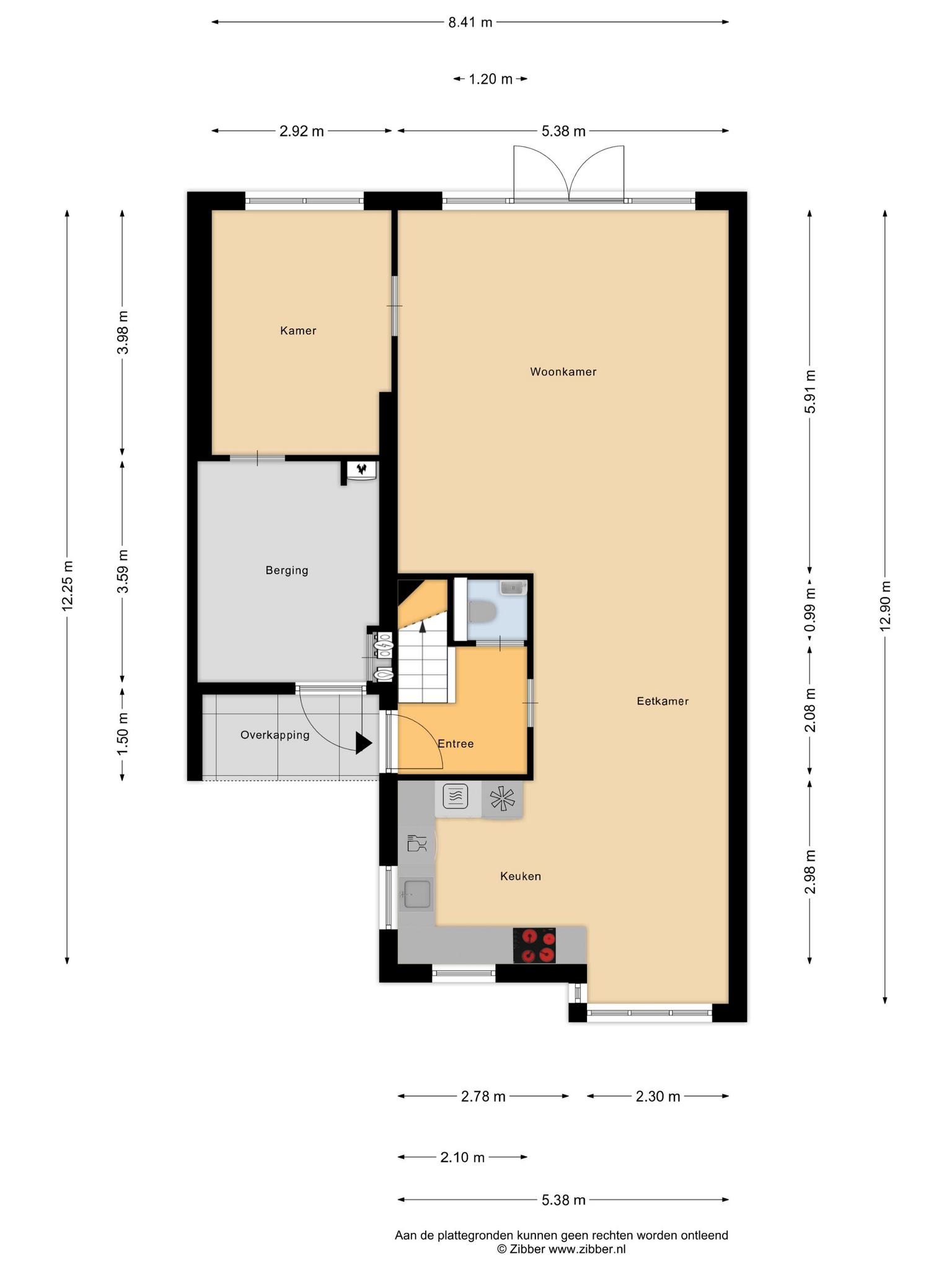 – Overdekte entree/hal met trapopgang naar de eerste verdieping.