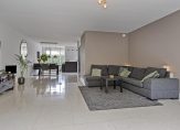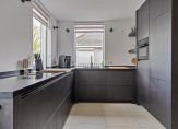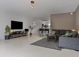 – Zeer ruime living (oppervlakte, inclusief open keuken: maar liefst circa 62 m²) met een fraaie, deels verwarmde tegelvloer, extra daglicht via een erker aan de voorzijde, stucwerk wanden en plafonds en openslaande tuindeuren naar de achtertuin.