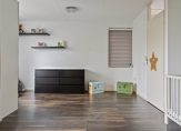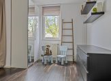 – Zeer grote slaapkamer aan de voorzijde (oppervlakte: circa 29 m²) met een laminaatvloer en doorgang naar de loggia. Voorheen waren dit twee aparte kamers; de oorspronkelijke indeling is eenvoudig weer te herstellen.