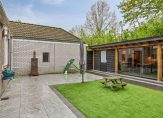 – Geheel vrij gelegen achtertuin. Deze moderne tuin is een heerlijke plek voor jong en oud. De combinatie van kunstgras en strakke tegels zorgt voor een nette uitstraling en minimaal onderhoud. Kinderen kunnen veilig spelen op het kunstgras, terwijl je zelf geniet onder de stijlvolle houten overkapping met glazen schuifwanden – perfect voor elk seizoen. De tuin biedt volop privacy en een fijne balans tussen comfort en sfeer. Opzij van de woning is er een achterom via een gangetje naar de straat.