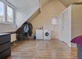 – Ruime slaapkamer (oppervlakte: circa 29 m²) met laminaatvloer, veel kastruimte, een grote dakkapel en aansluitingen voor wasmachine en droger.